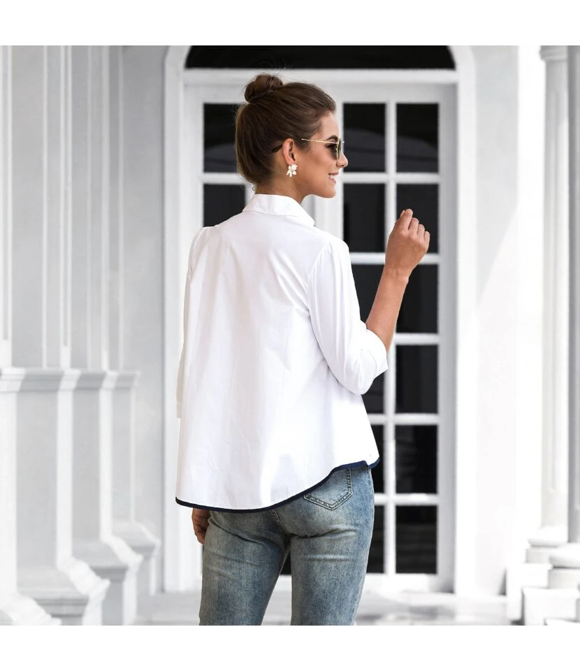Casual Loose Button Lapel Long Sleeve Top Wholesale Women’S Top